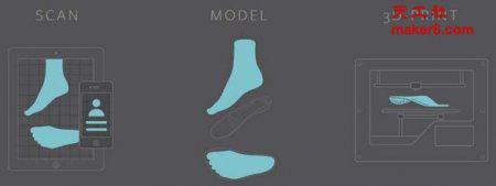 SOLS客戶可以使用手機(jī)等設(shè)備對(duì)自己的腳部進(jìn)行掃描,然后在app上下訂單,SOLS的團(tuán)隊(duì)獎(jiǎng)掃描數(shù)據(jù)轉(zhuǎn)換成3D模型,再據(jù)此為客戶定制鞋墊并使用3D打印機(jī)打印出來(lái)。