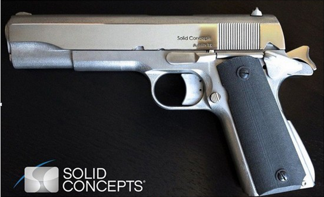(圖為美國一公司于2013年推出的全球首款3D打印金屬手槍,該槍可連發(fā)50多發(fā)子彈)