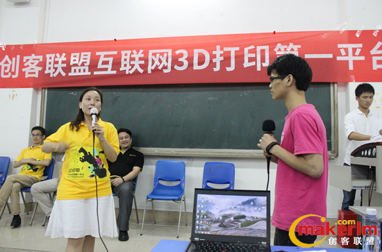 創(chuàng)客聯(lián)盟的創(chuàng)始人陳晶,通過親身經(jīng)歷講述成功秘笈——相信自己、無懼失敗。從創(chuàng)業(yè)初期的舉步維艱,到現(xiàn)在一步一個腳印,得到社會各界的認可,更重要的成就感來自能借助創(chuàng)客聯(lián)盟3D打印平臺,讓設計師的想法落地成型、用戶滿意、市場認可、多方利好。