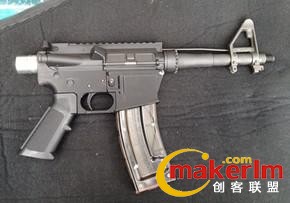 槍械發(fā)燒友HaveBlue,用Stratasys公司的3D打印機(jī)以及CMMG .22安裝包,打印了一部a.22步槍(口徑5.58mm),通過氣體進(jìn)行射擊操作。射擊時(shí),火藥燃?xì)馔ㄟ^槍管上方的導(dǎo)氣管直接進(jìn)入機(jī)框中,槍管上有一個(gè)“氣體按鈕”,按下時(shí)氣體會(huì)貫穿整個(gè)槍管。