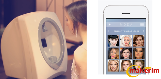 MODA使用了市場上最先進的實時面部繪圖軟件,并和尖端的3D打印技術(shù)相結(jié)合,可以配合一款簡單直觀的app使用。該app內(nèi)有幾十個內(nèi)置妝容可以選擇,用戶選好妝容以后,app會將之與用戶臉部照片相結(jié)合,并展示化妝后的效果。如用戶對效果滿意,他們可以將臉部放到MODA上進行掃描,掃描后30秒鐘內(nèi),MODA將會把化妝品3D打印到用戶臉上。