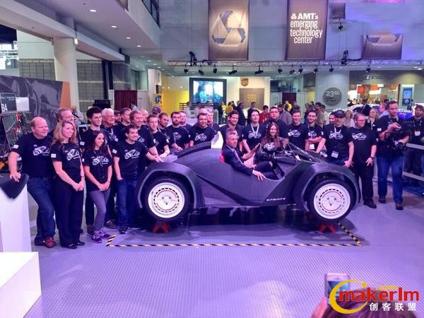 2014年9月,在芝加哥國(guó)際制造技術(shù)展(IMTS)上,Local Motors現(xiàn)場(chǎng)打印了一臺(tái)完整汽車(chē)——這是世界上第一臺(tái)3D打印汽車(chē),從打印到裝好僅用44小時(shí),震驚了全世界。該公司當(dāng)時(shí)宣布將在5年內(nèi)在全球建造50座微工廠,開(kāi)創(chuàng)一個(gè)蓬勃發(fā)展的3D打印汽車(chē)制造業(yè)。